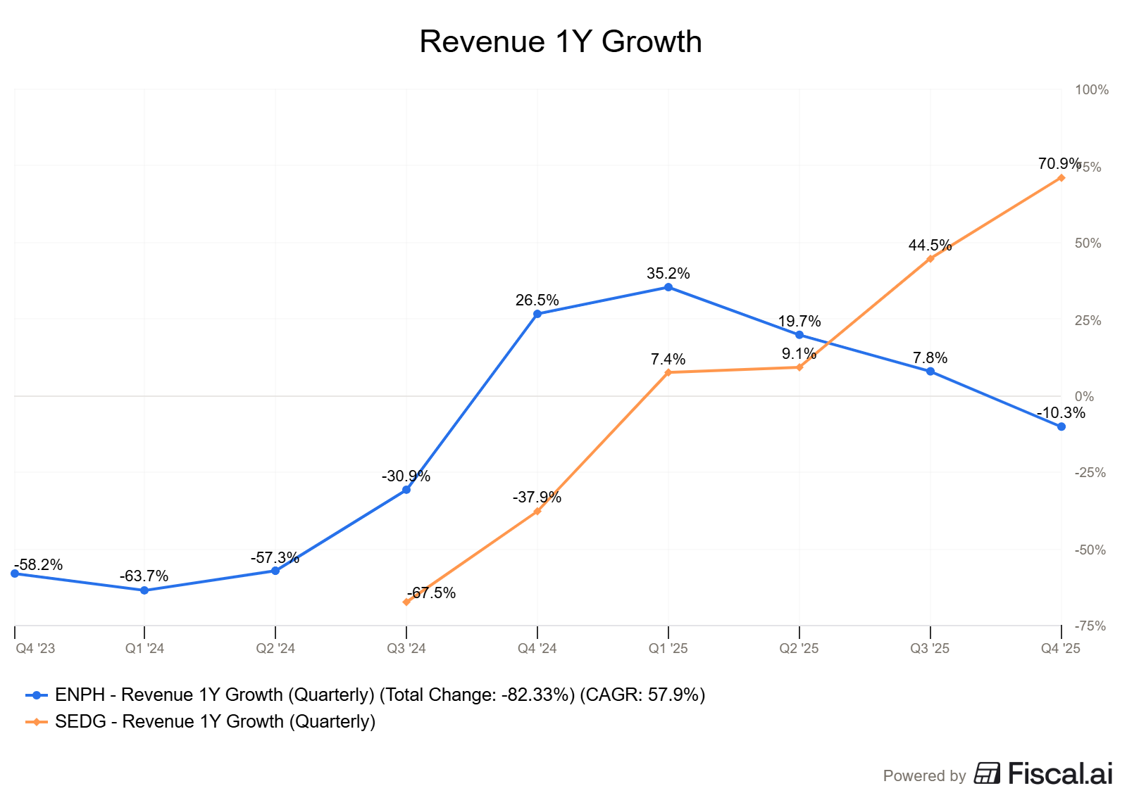 You can see this in the revenue profile of both companies as SolarEdge is clearly back to growth while Enphase is still a bit lagging.