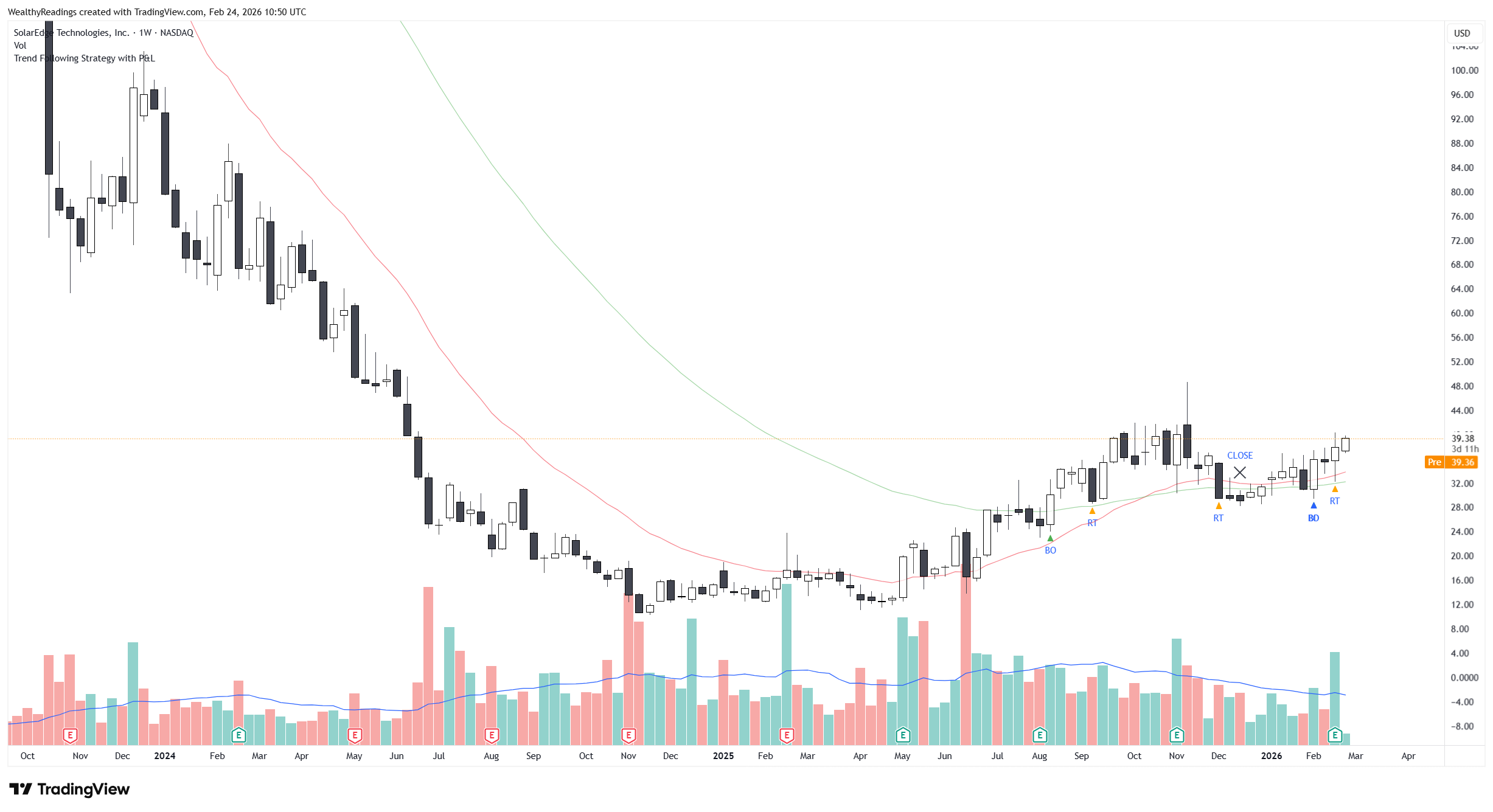 Anything around $35 seems like a fair buy as long as the stock holds above its weekly 50 and local bottom ~$28. This is a great risk-reward I can take today with a very large potential if SolarEdge were to succeed in its transformation, even more if demand were to pick up and revenues/cash generation also accelerate.