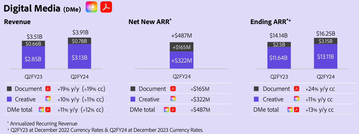 Business. Digital Media is still the biggest source of revenue, growing strongly thanks to new customers, growing usage of their apps & subribers upgrading their subscription plans thanks to the new Firefly tools.