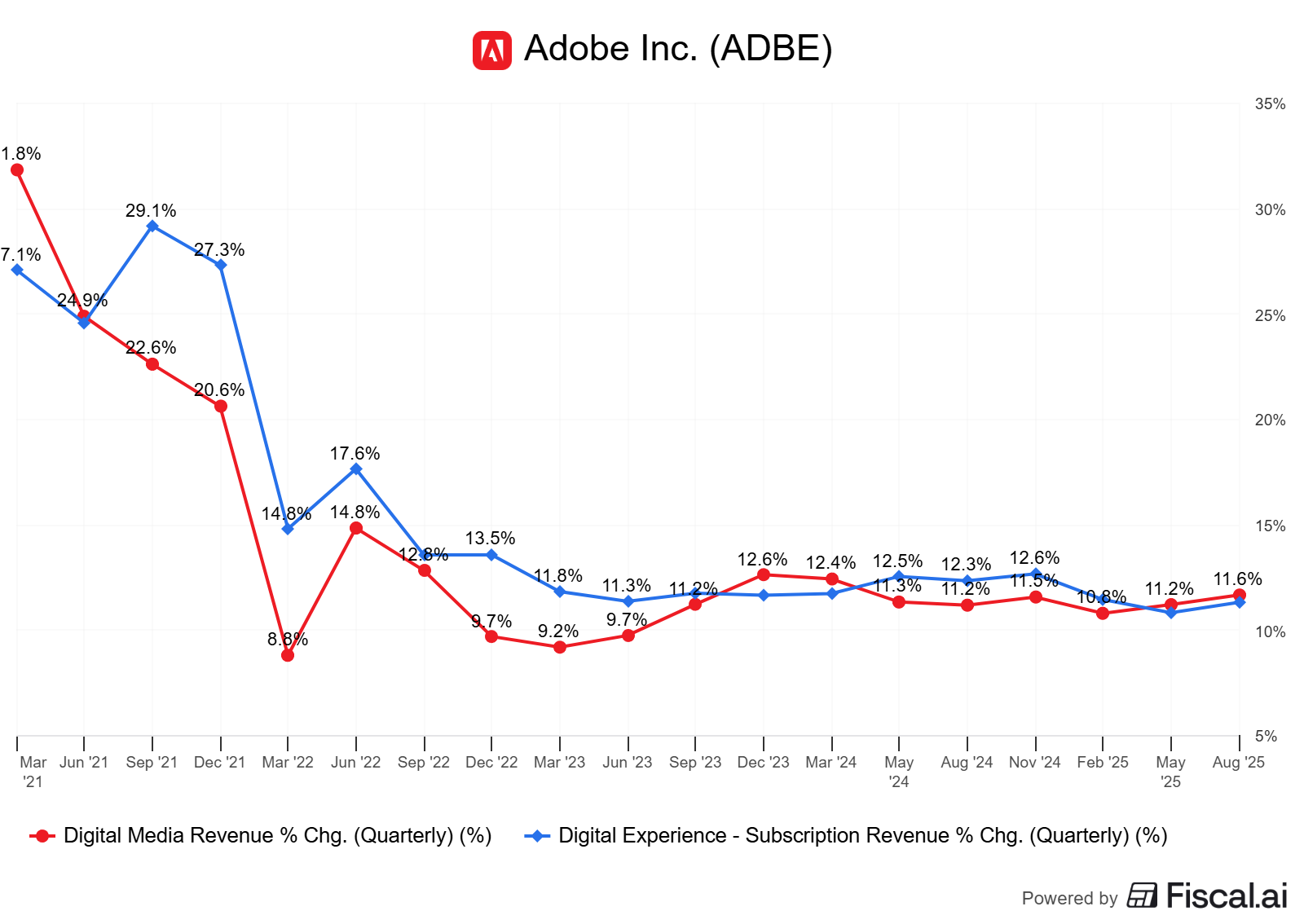 I struggle to see why anyone would continue to doubt Adobe as three years later, not only AI and ChatGPT-like LLMs did not disrupt its business, but actually enhanced it. The company grew steadily since then and continues to raise its guidance, while the market is scared of a never coming disruption.