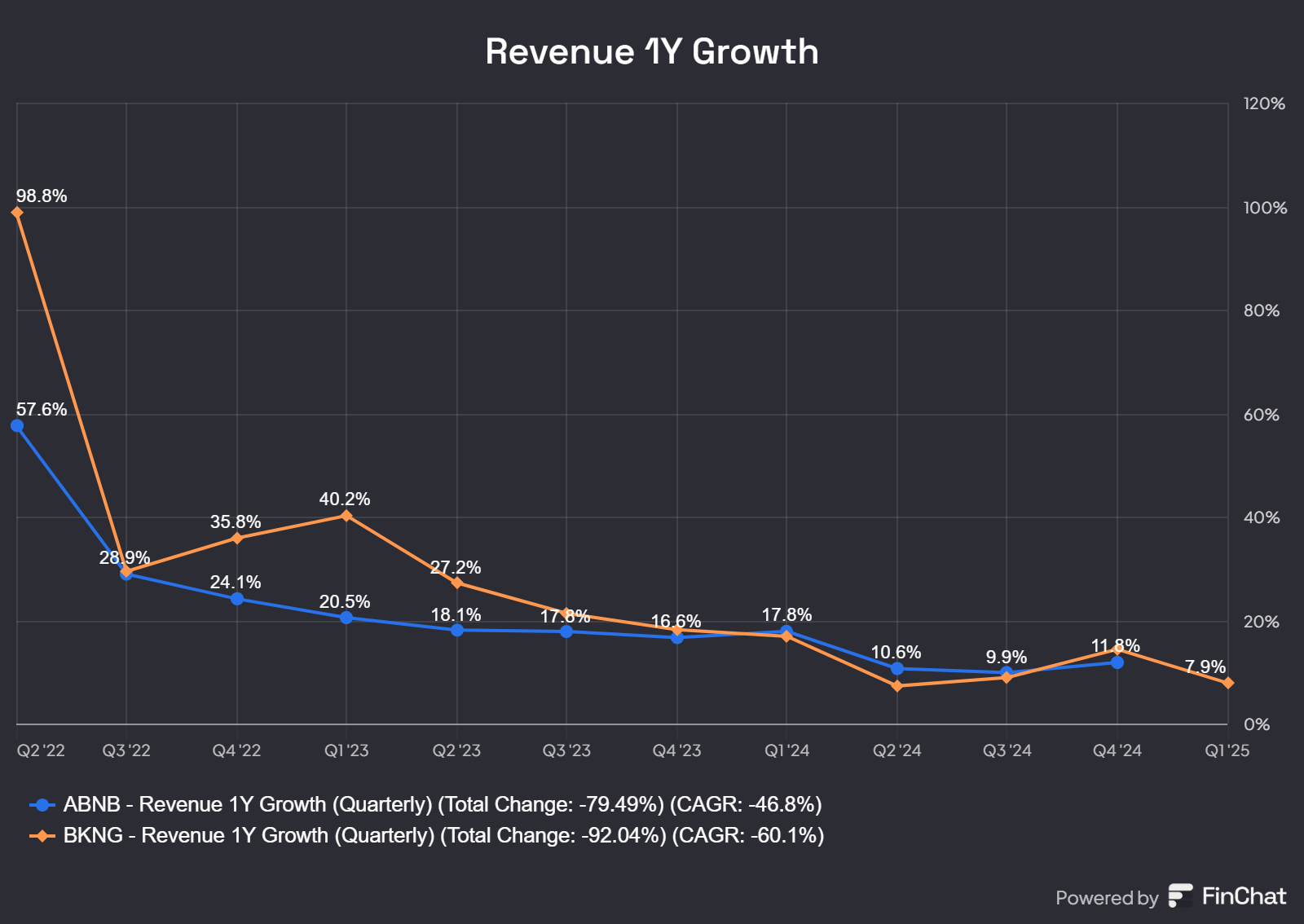 Global usage growth is clearly slowing YoY - sequential comparisons make no sense. Airbnb is now a single-digit growth business which management tries to explain with comps timings due to Easter & currency mix. Truth is, the decline is since quarters now & FX or Easter can’t explain it all.