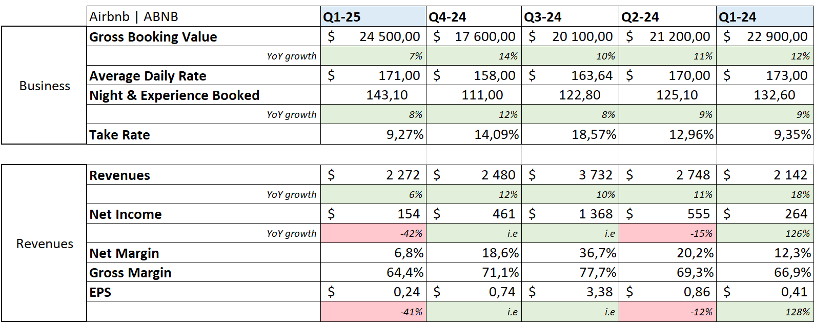 On take rate & average daily rate, those remain stable & have to as Airbnb is meant to scale on volume, not pricing - I detail this on the IC clearly. To remain competitive, they need prices low so volume grows as travellers choose Airbnbs over hotels.