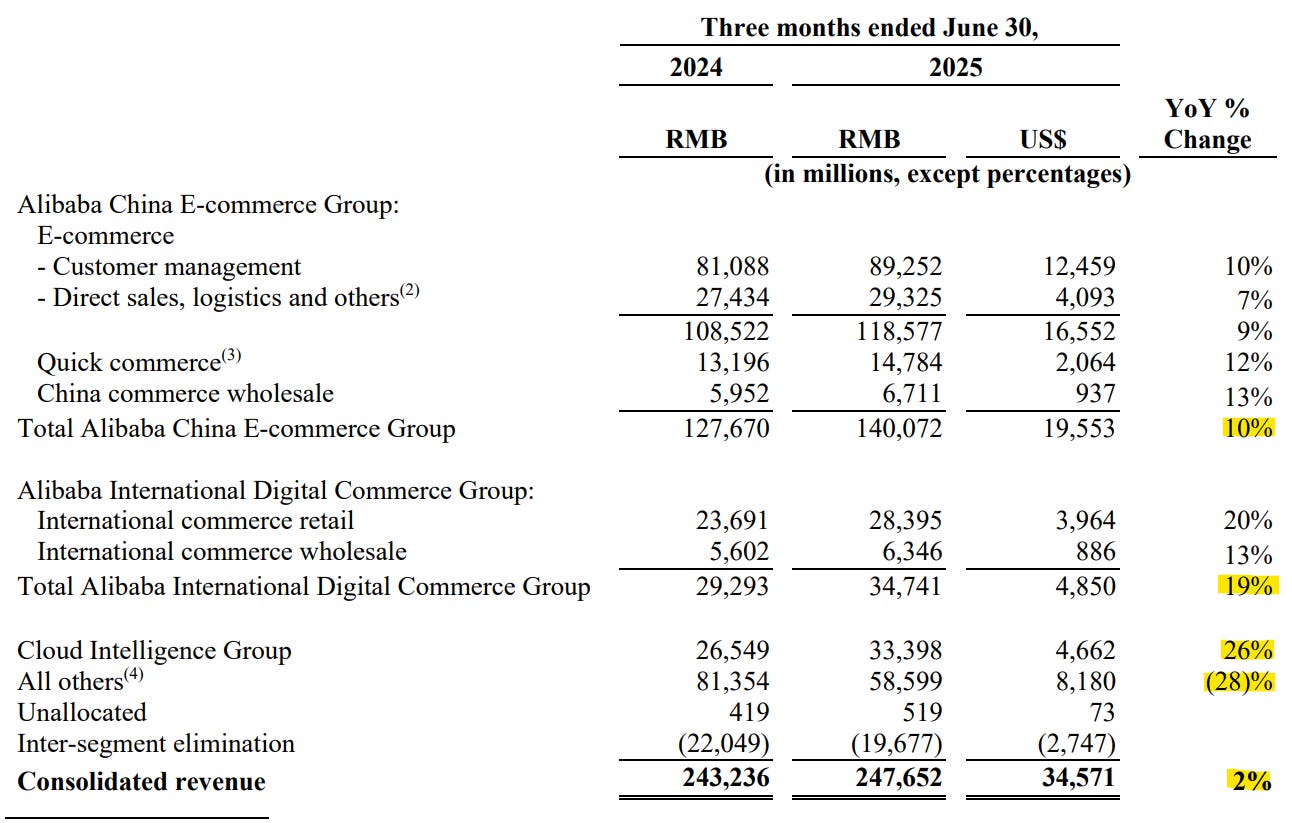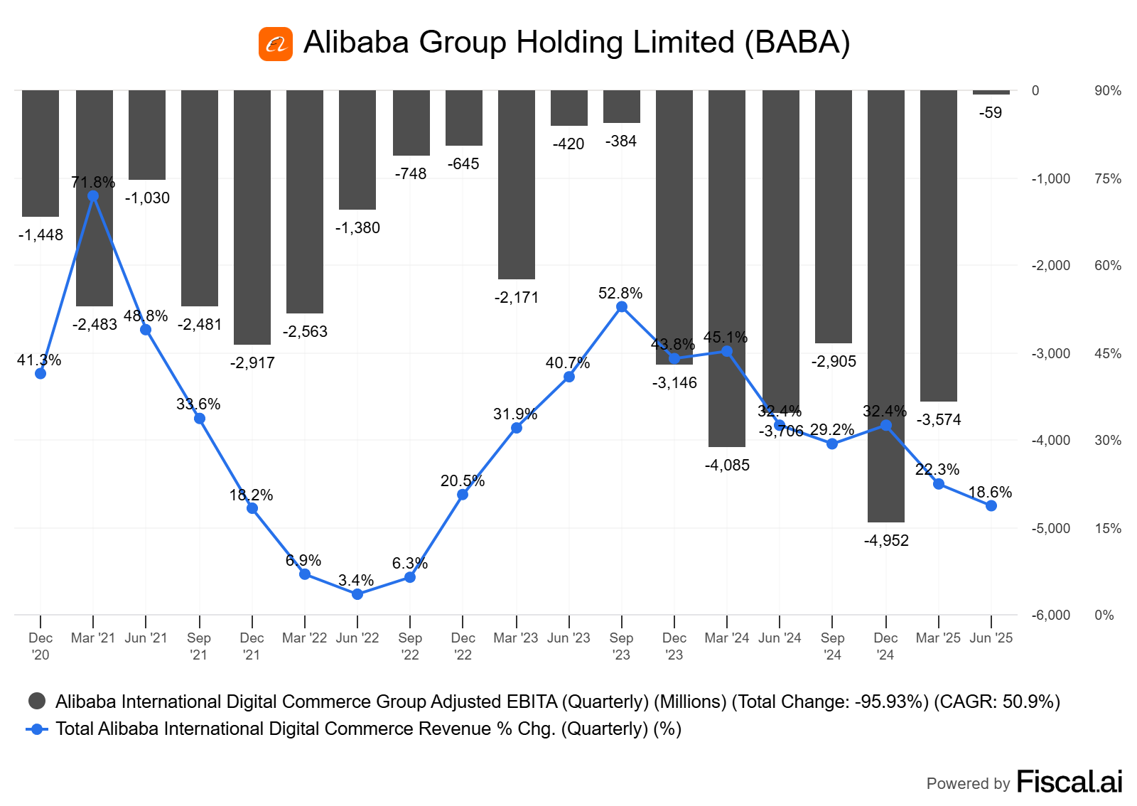 The answer is simple, Alibaba sold two of its retail store branches early 2025, Sun Art and Intime, which revenues were included within their “other” branch. The revenue comparison is hurt as those aren’t part of Alibaba anymore. Excluding their impact, the group would have grown above 10% YoY.