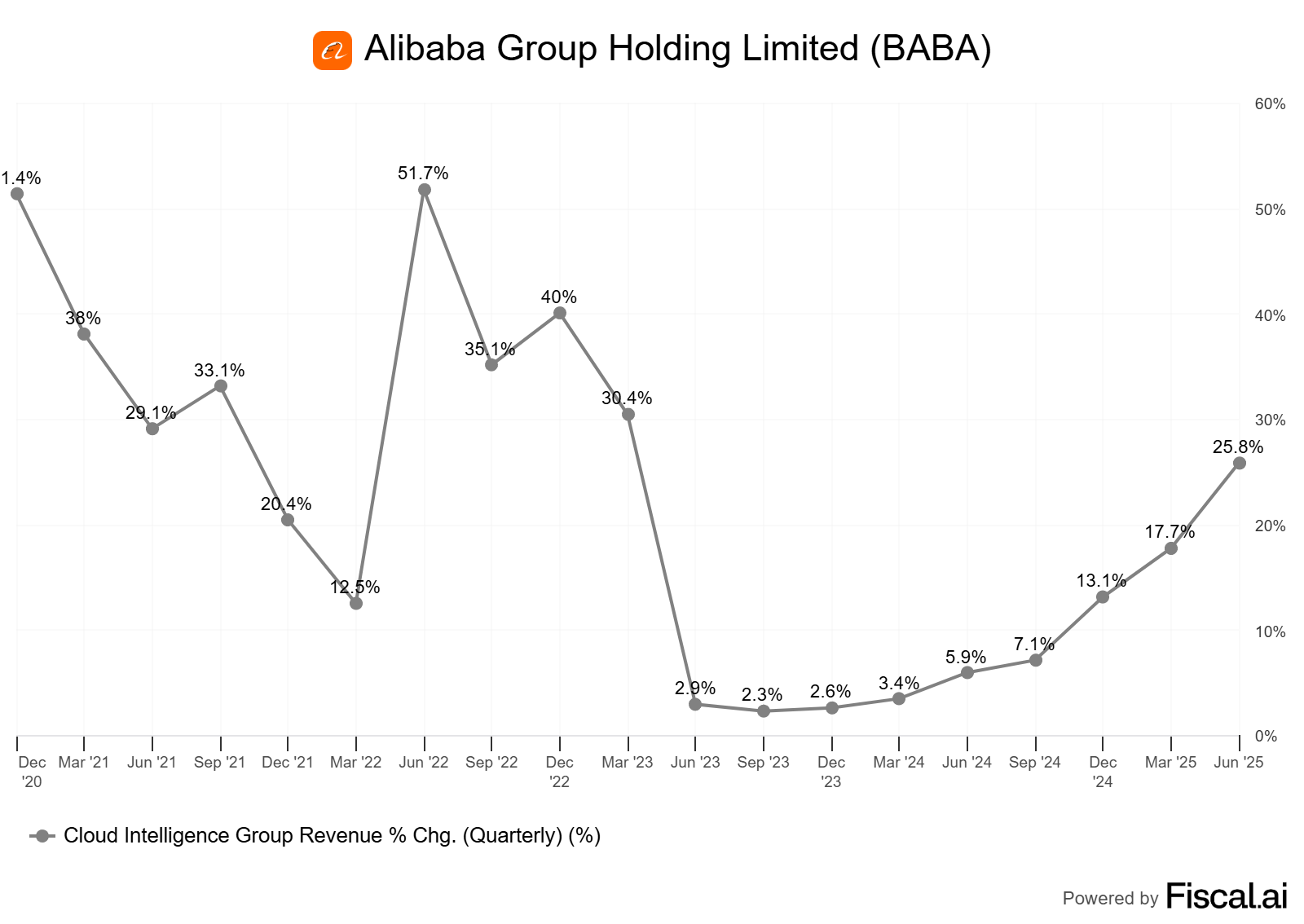 And while local e-com is healthy at worst, the trend for Alibaba’s tech is crystal clear: an accelerating demand growth for AI services and therefore other tech services. The AI revolution was massive in the U.S. and China is getting, with less focus on it from enterprises hence less demand - although their physical AI is close to be on maybe on par with the U.S. But the country is bound to follow America’s path, and if Alibaba succeeds at being the number #1 provider… The opportunity is massive.