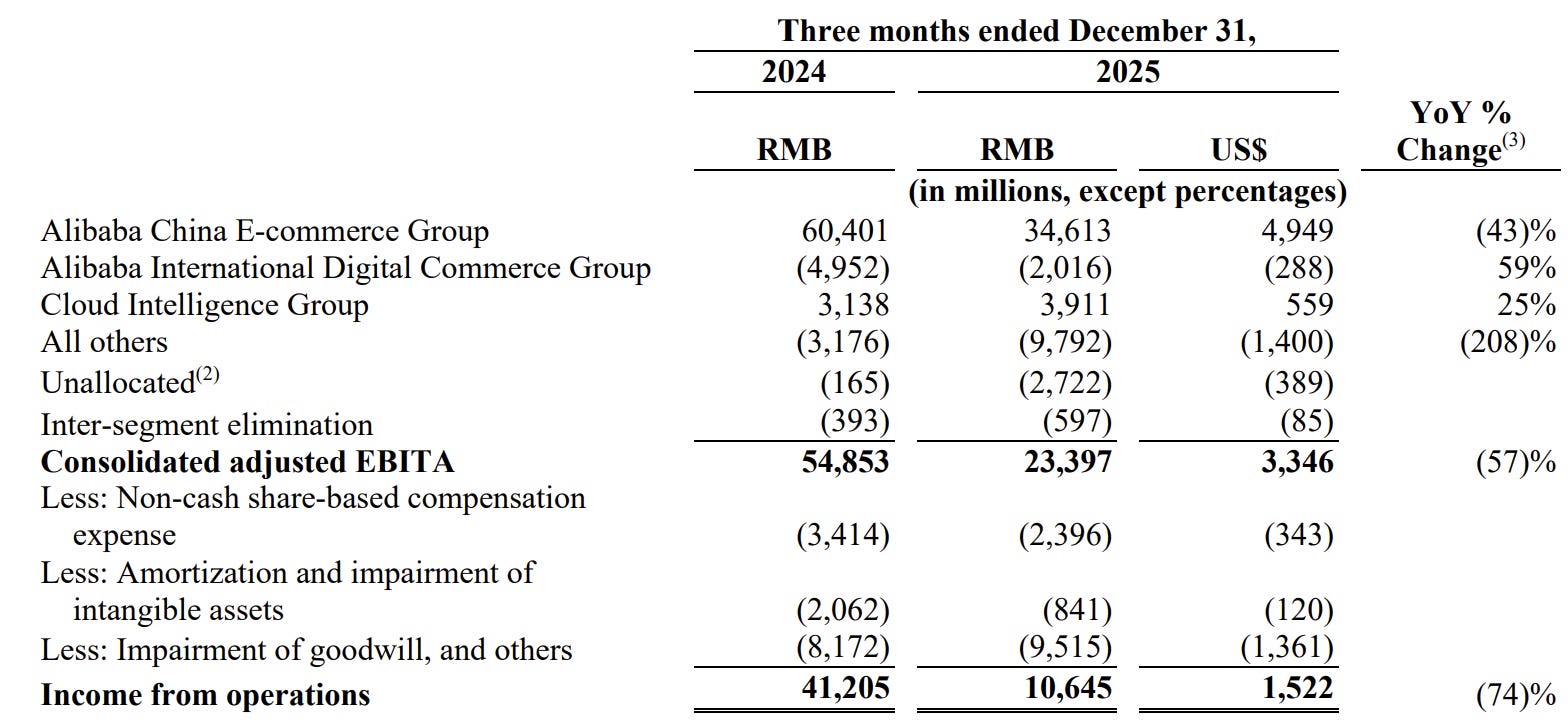 To expand AI infrastructure, you need cash. And this quarter, Alibaba saw a 2% revenue growth - which should have been a 9% without the negative drag of Intime and SunArt, for a -74% decline in operating income… What happened?