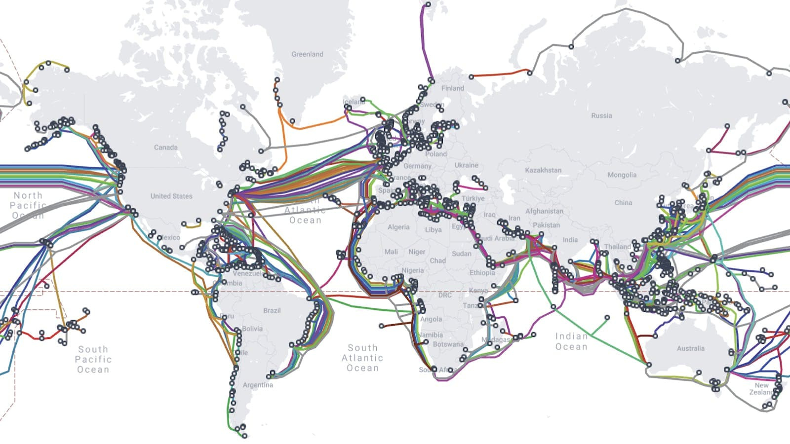 In a few words: optimized interconnections of datacenters through physical and wireless connections. Most communications are physical, through physical cables, many of them underwater between continents, and many more on land.