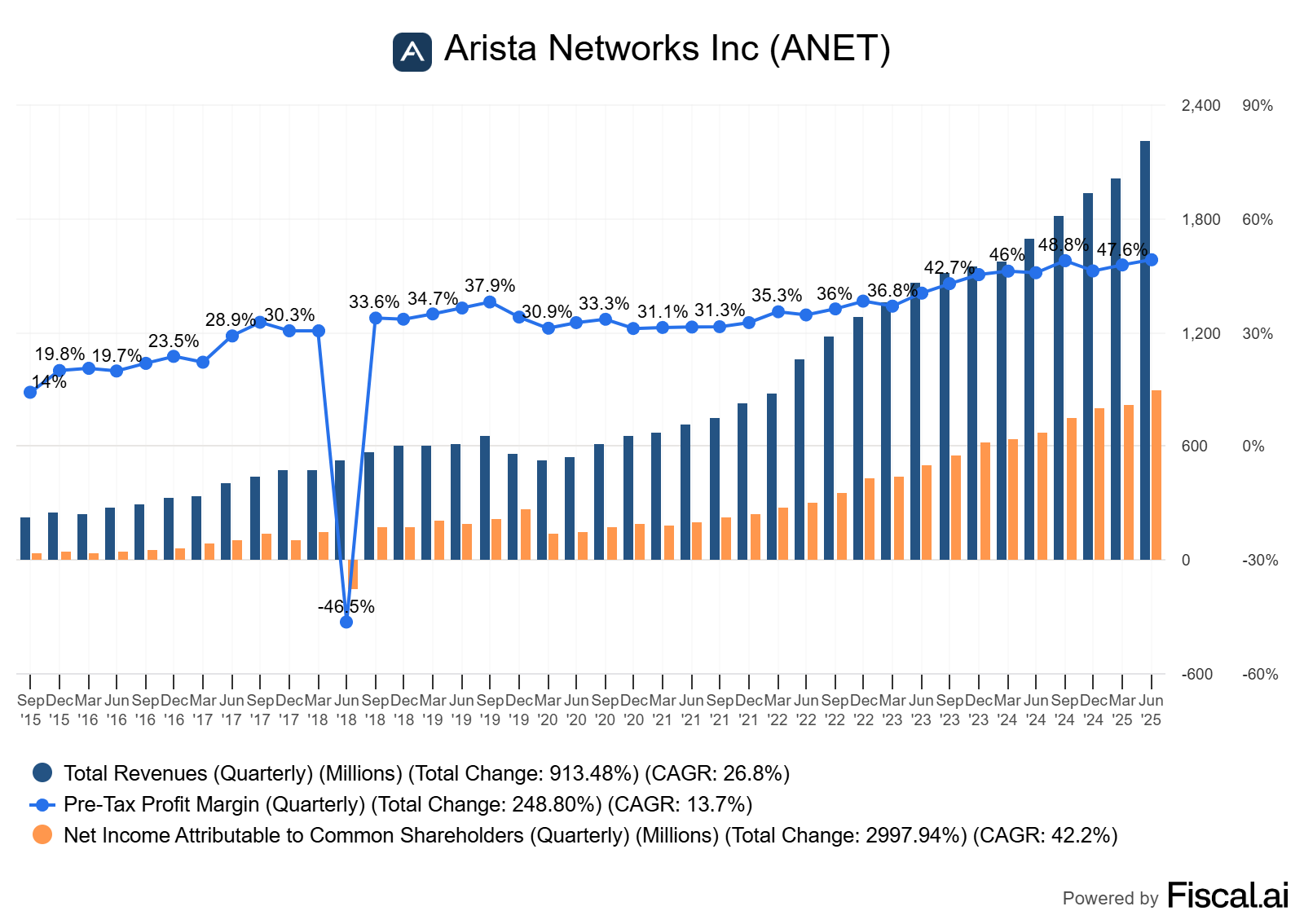 Networking & security hardware/software is massively sticky. So if you’re the best at it and do not turn complacent - like Cisco did, you should have wonderful years ahead. Even in Cisco’s case, it took decades and an AI revolution for its industry leader status to be challenged.