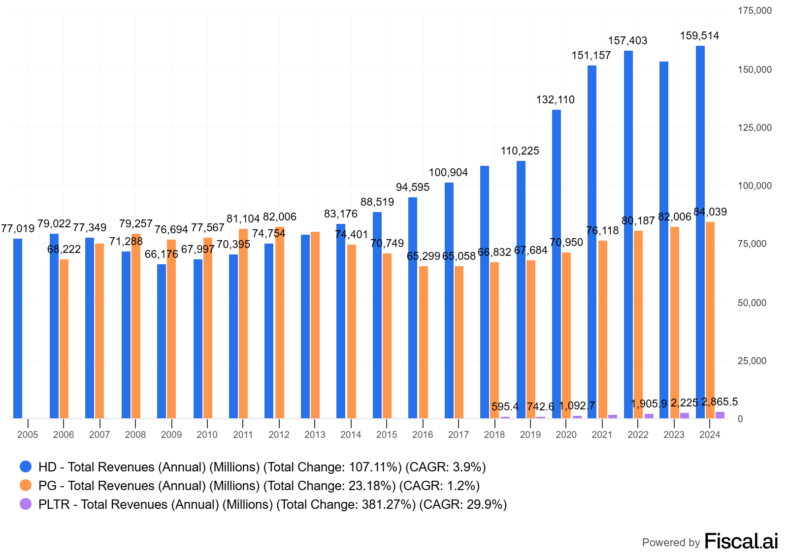 Palantir is the 21st biggest capitalization in the American stock market, between Home Depot & Procter & Gamble who respectively generate 55.7x & 29x more revenues.
