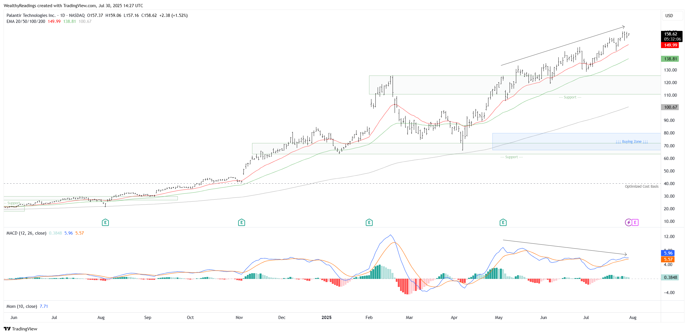 The market is extended, the stock trades at high multiples without much room to yield significant returns - except under a massive bull case, I’d rather hold some cash and I consider that there are better opportunities out there, plus momentum is starting to show some weakness.