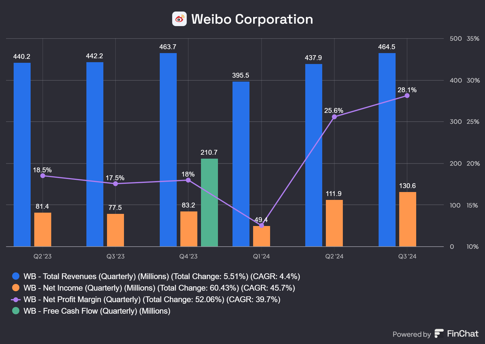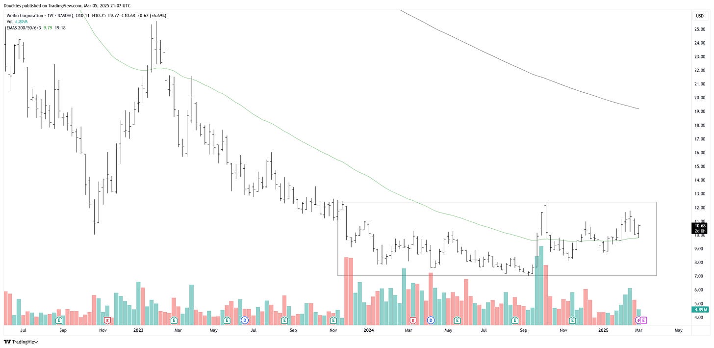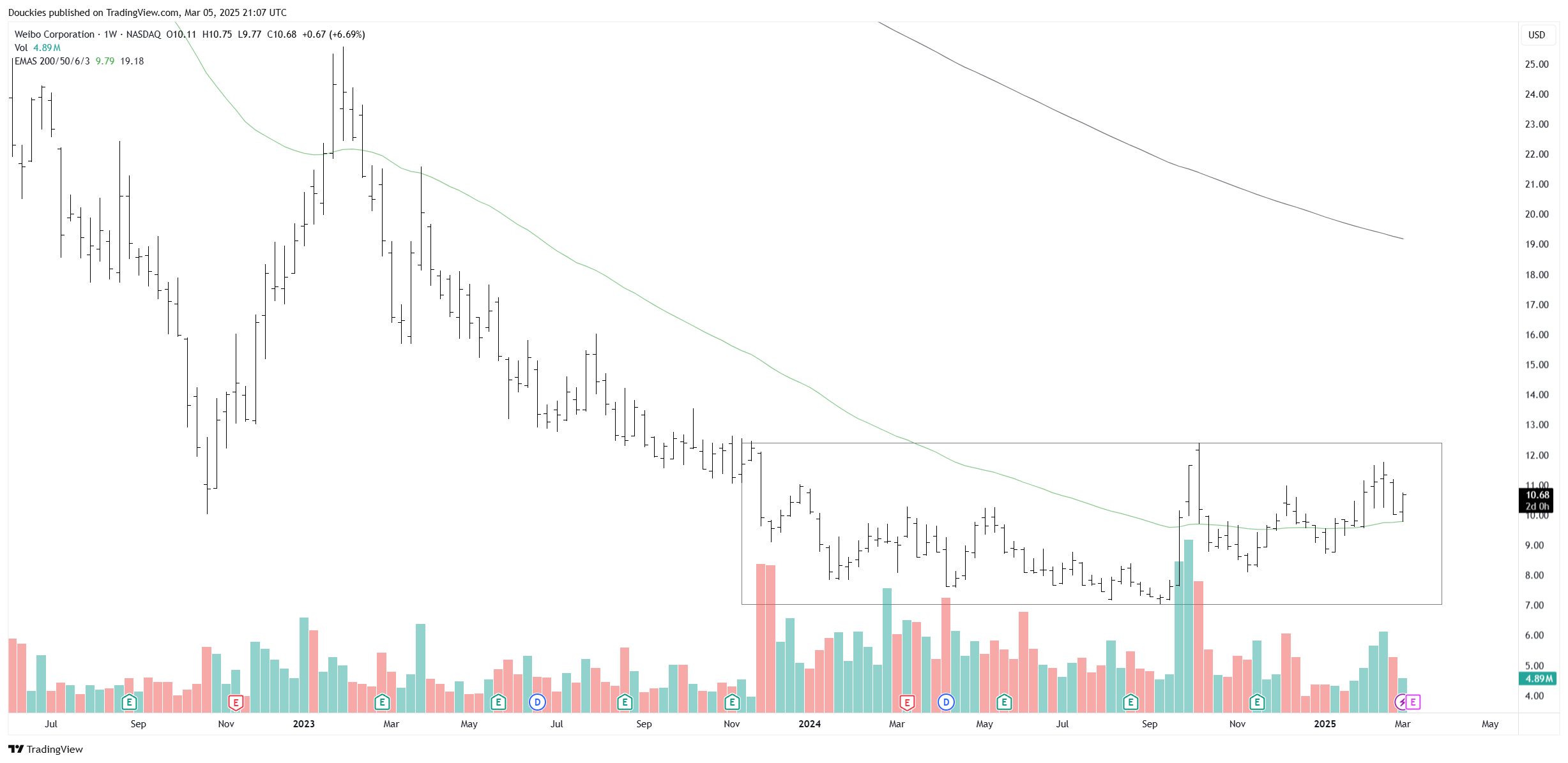 Another name to watch in the same sector. A microblogging platform, similar to X, it generates revenue from advertising & subscription - a recurring theme in China. Its financials are much less compelling but the last three quarters have shown a rapid uptick in subscriptions, bringing growth back to the name.