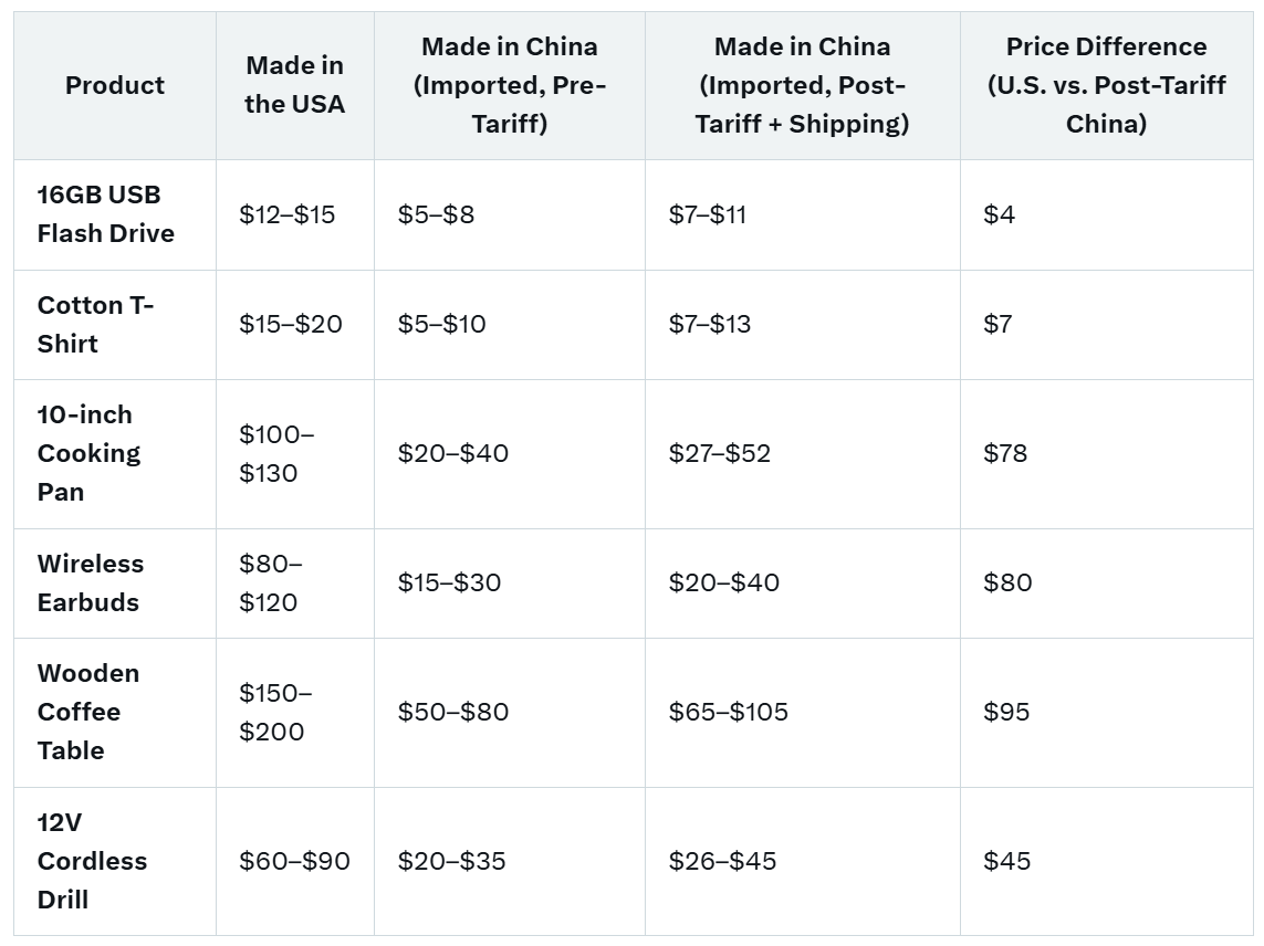 One thing is certain: tariffs would need to be extremely high for Chinese products to become uncompetitive, even in the U.S. I asked Grok to provide some examples, and while I’m not sure the data is perfect for each, it gives an idea. Even if we were to really have strong tariffs, the difference would remain significant.