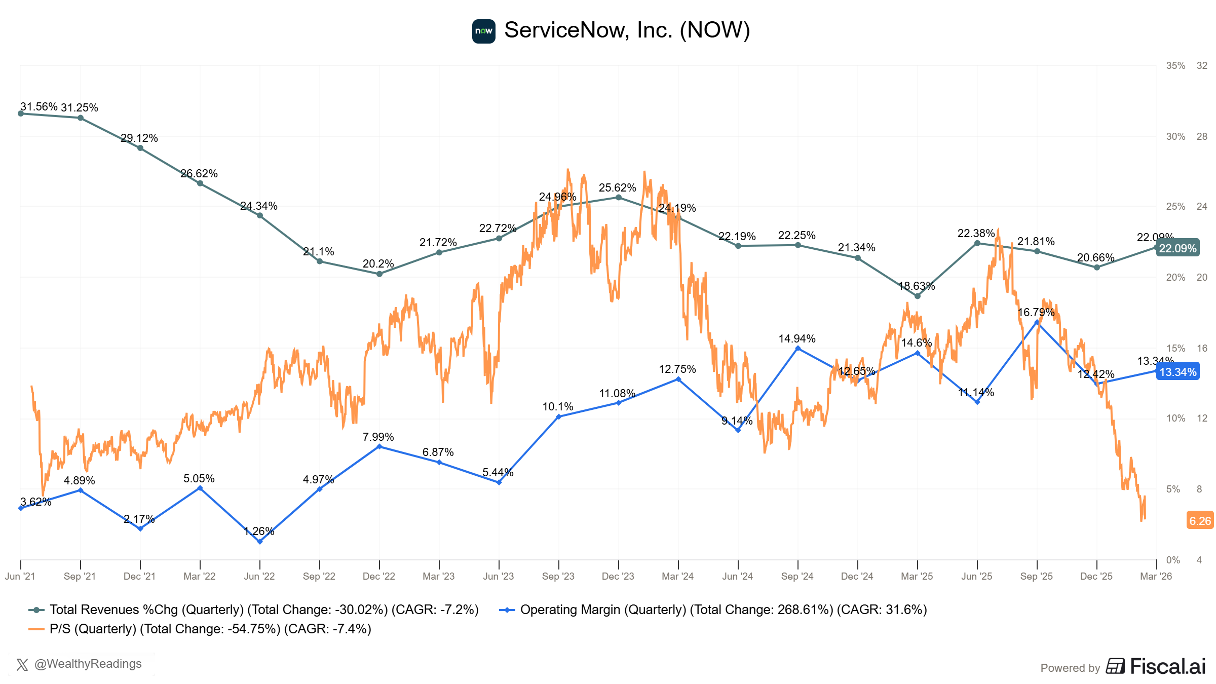 So the real question is: Why aren’t we seeing an acceleration in SaaS when AI is now advanced enough to do so, and ServiceNow has had long quarters to implement it by now? And why would the company deserve more than 6x sales if its margins and revenues aren’t going to accelerate?