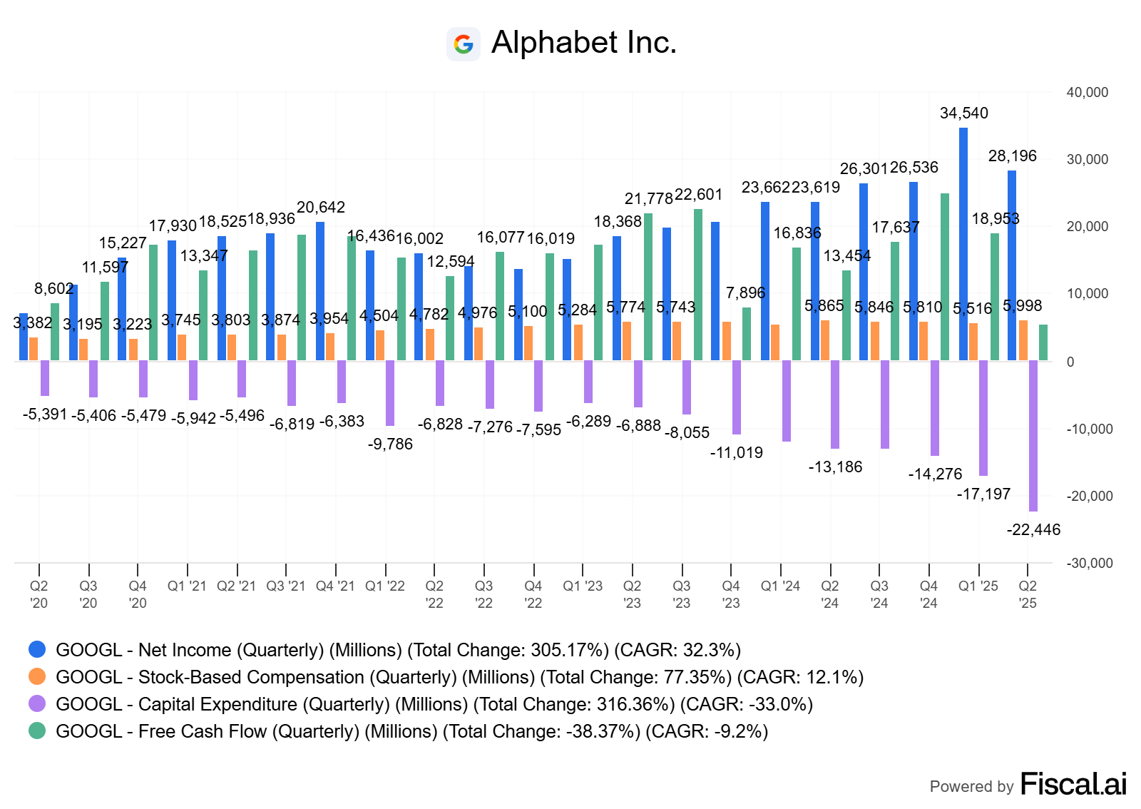 Google focuses on capitalizing on AI & this requires massive investments. And this won’t slow down as Google is now planning to spend $85B FY26, up from $75B.