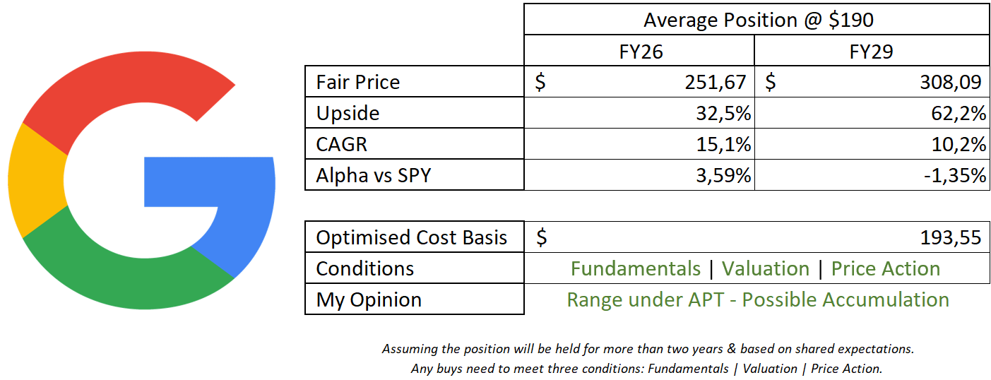 Google continues to be a great opportunity in my opinion, and anyone with a clear & bullish bias towards the company and no fear about that famous disruption could accumulate at today’s price.