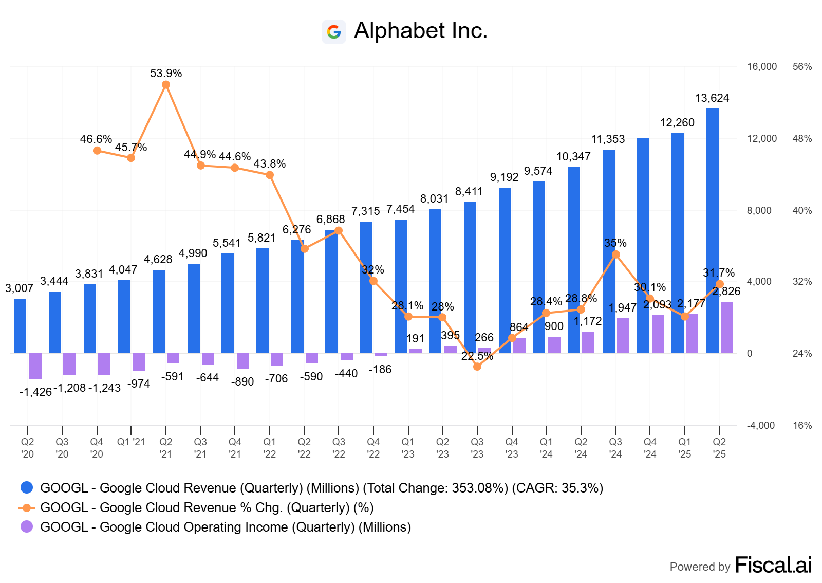 And revenues continue to accelerate while operating margin is expanding, pushing from 11.3% to 20% in a year. Google Cloud is an accelerating business generating more cash per revenue…