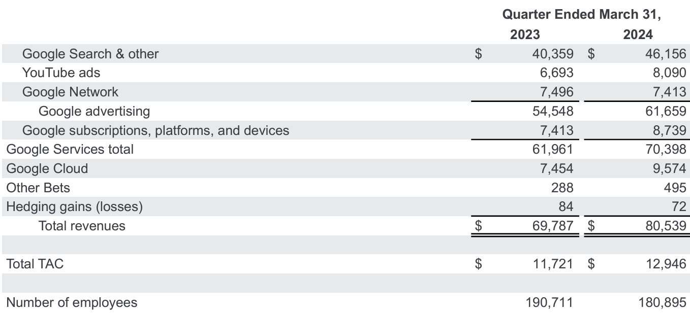 “In Search, recent advancements, including AI Overviews, Circle to Search, and new features in Lens, are transforming the user experience, expanding what people can search for and how they search for it. This leads to users coming to Search more often for more of their information needs, driving additional search queries.“