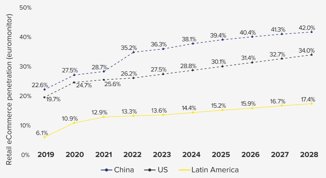 This is also why I started this investment case by a long layus on South America first, because the geography really matters and when it comes to the region, e-commerce integration is simply incomparable to others - due to lower buying power, lack of infrastructure, banking access, etc...