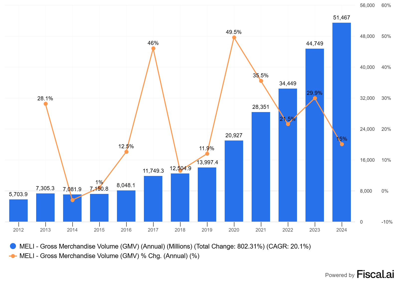 Growing purchasing power & access to convenience will grow global usage of e-commerce platforms, and MercadoLibre is the biggest one of the region although competition is present - Amazon but also Chinese platforms & some other smaller players. But we'd only need the total pie to grow for MercadoLibre to grow as well, while any market shares growth would be a cherry on top.