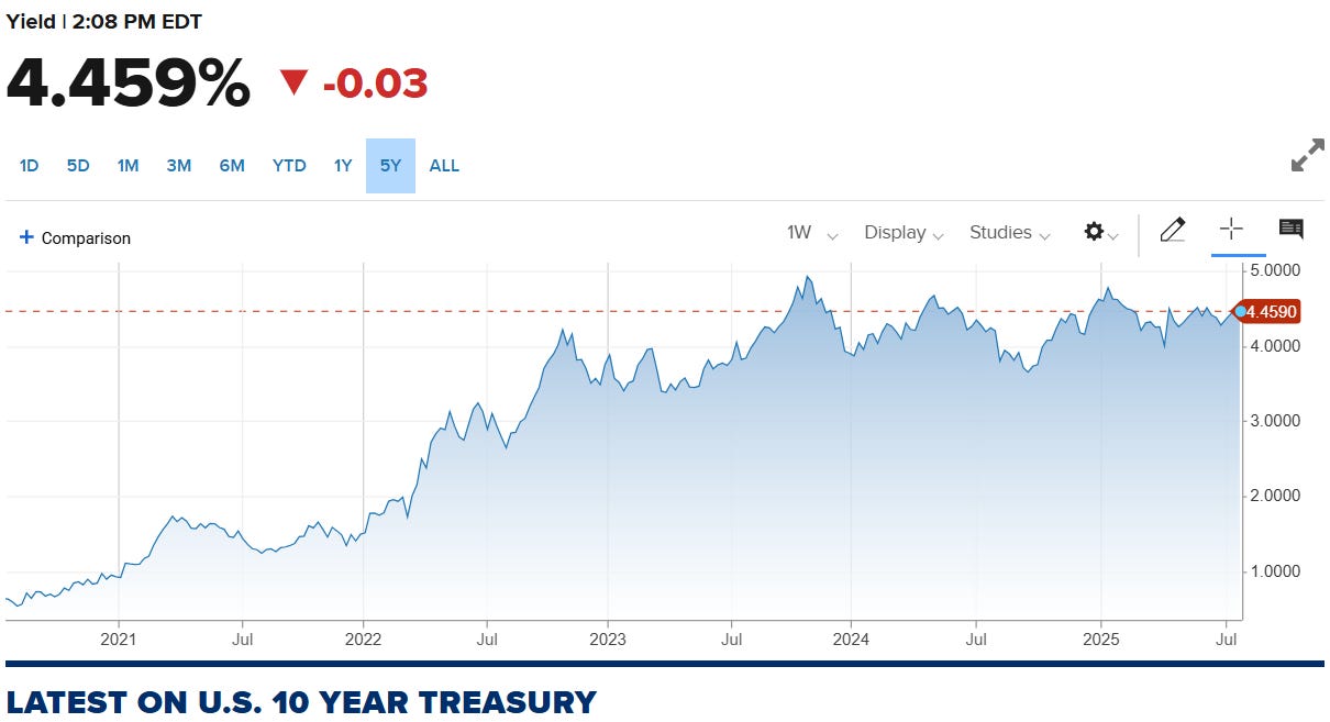 Which brings us to a third problem - it starts to be too many… Their debts are labelled in dollars, which means they also have an interest rate tied to the American Treasuries rate… Which has been rocketing over the last years after Covid's inflation, and is apparently not ready to go back down.