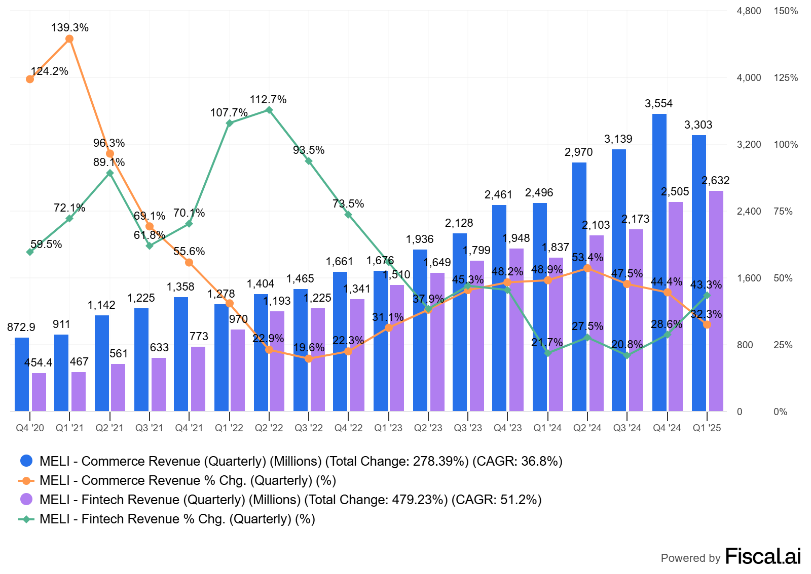There have been a small slowdown in the e-commerce growth those last quarters but fintech services are a mirror with an accelerating growth, highlighting my case above as demand for financing grew with lower interest rates & a weaker dollar - Mercado's credit portfolio grew 40% during the last three quarters.