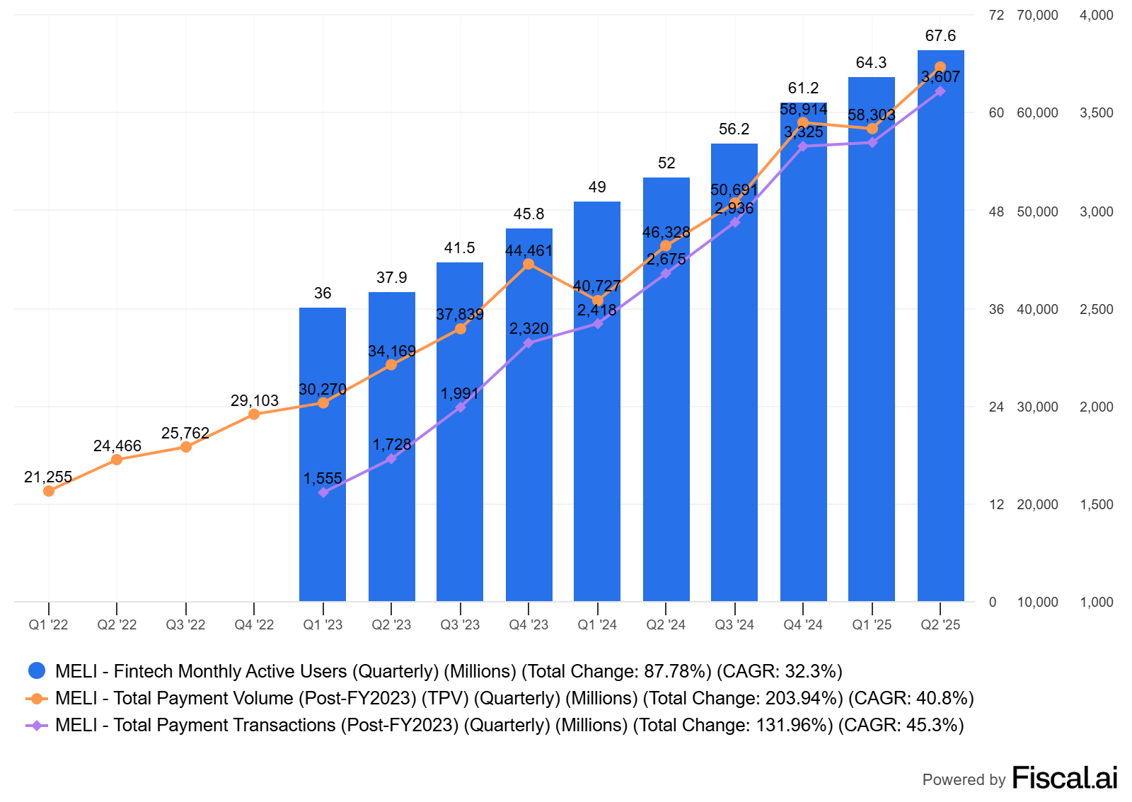 Monthly active users of Mercado Pago reached 68 million, reflecting rapid user growth and increasing engagement across our ecosystem. Assets under management more than doubled year-on-year once again. Our credit portfolio surpassed $9.3 billion, growing by 91% year-on-year.