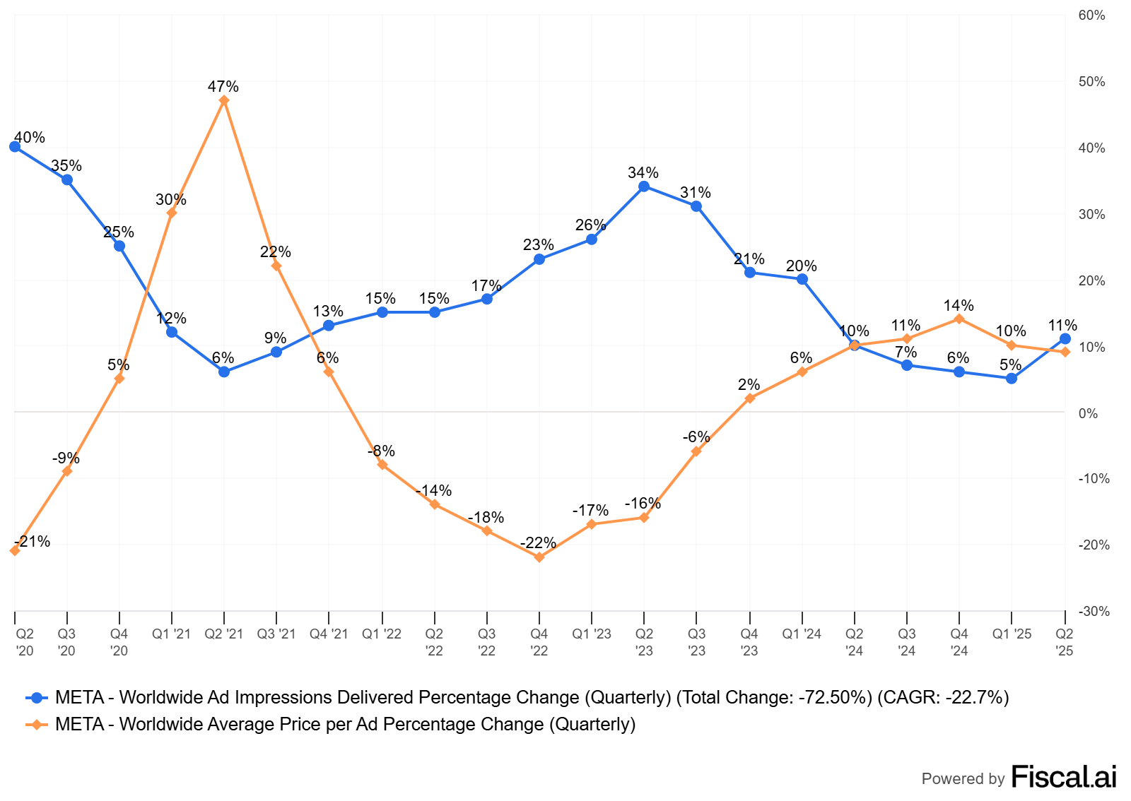 The growth rate is slowing down but only because comps become harder as Meta is constantly improving its models for years now - although the uptick in impressions is really impressive at this point.