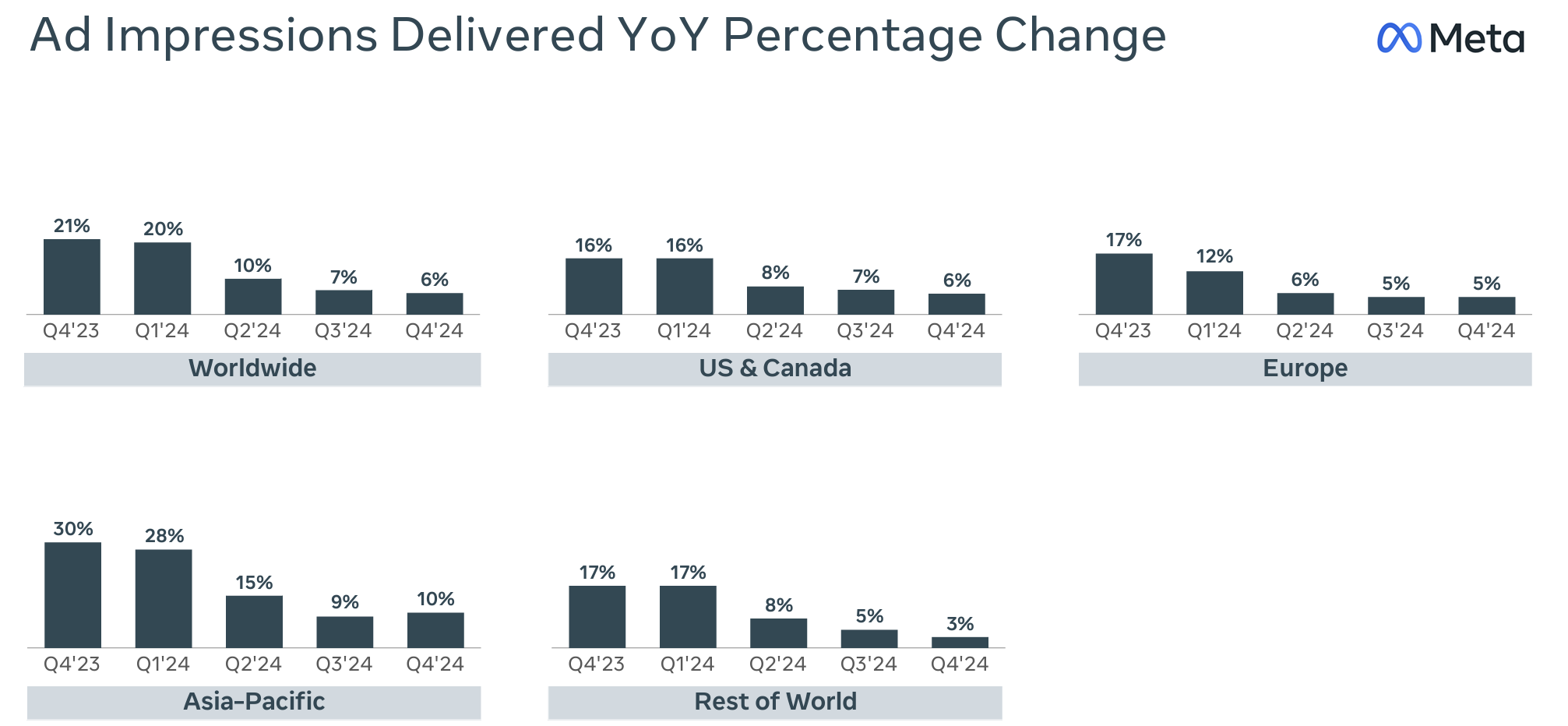 Impressions continue to grow regularly since Meta started its AI optimizations more than a year ago now. Growth is either stable or accelerating depending on the geographies.