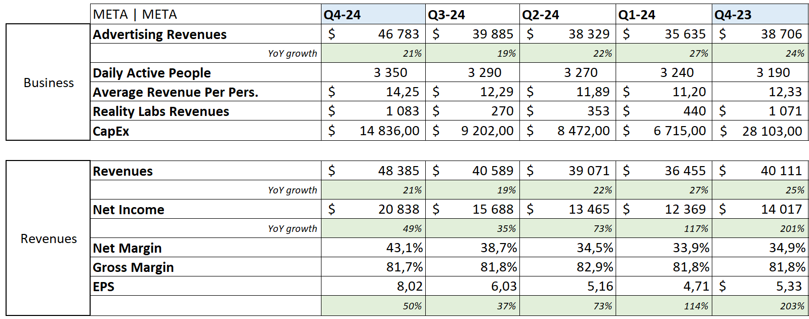 Meta closes the year with $164.5B of revenue & a 21.9% YoY growth and $62.36B of net income, a 59.5% YoY increase while net margins passed from 28% to 38%… Impressive, especially as there is no cheating here, everything comes from business optimization.
