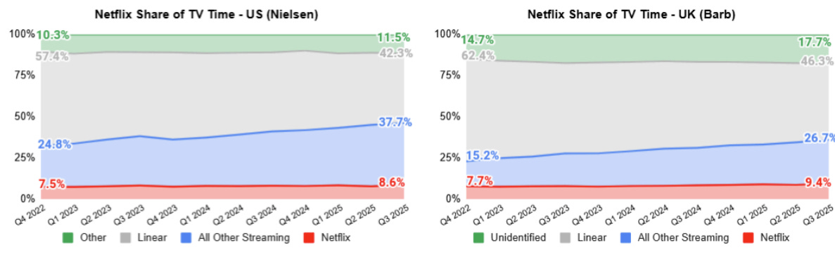 Netflix is part of a very large and rapidly growing industry, streaming demand is rising for all platforms - I’d suspect for some like YouTube more than others. The good thing is that these platforms are taking shares from older methods rather than cannibalizing each other.