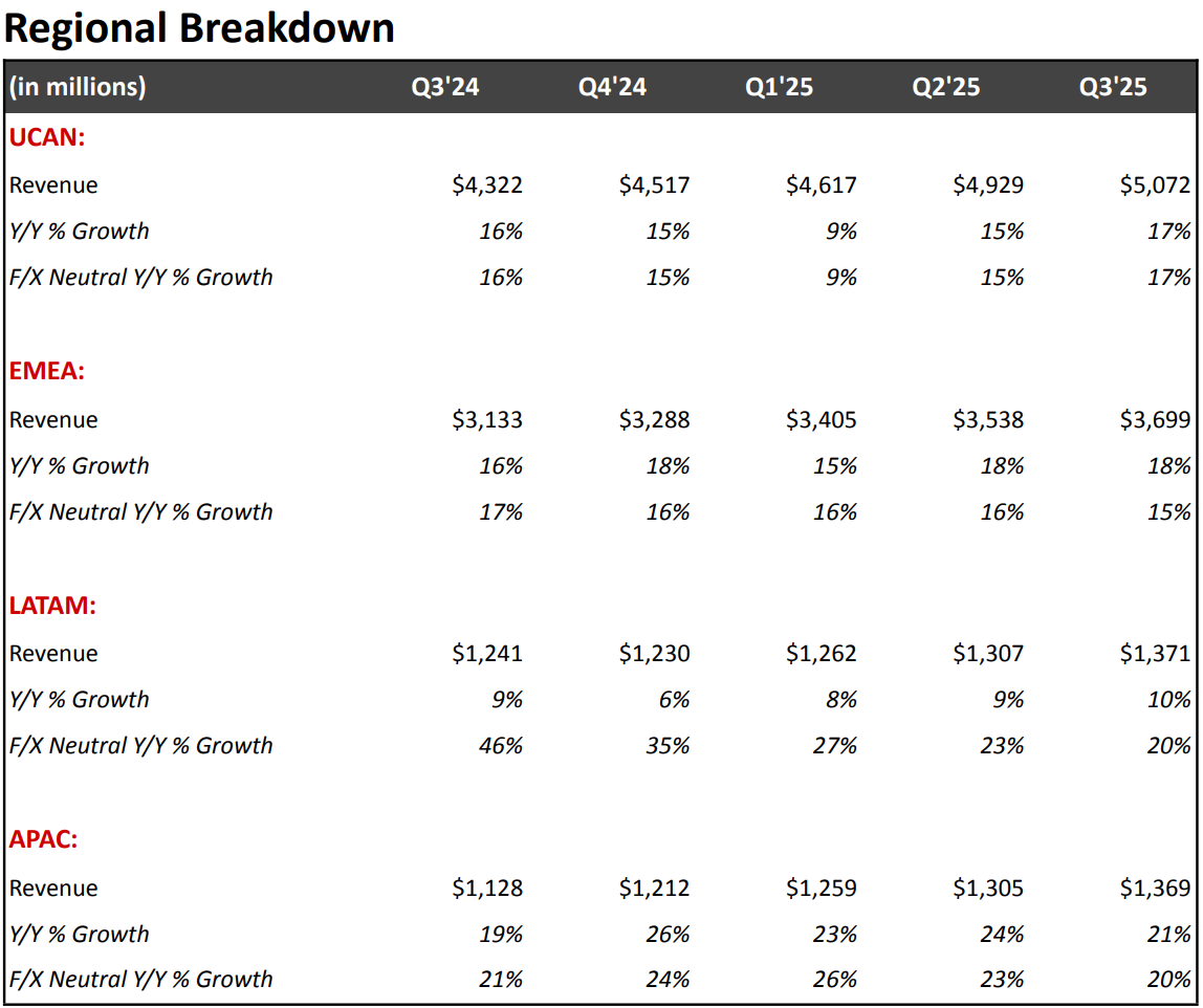 Management expects $11.96B in revenue next quarter, roughly 16% YoY growth, in line with market expectations. FY25 revenue is projected to grow 15.6%.