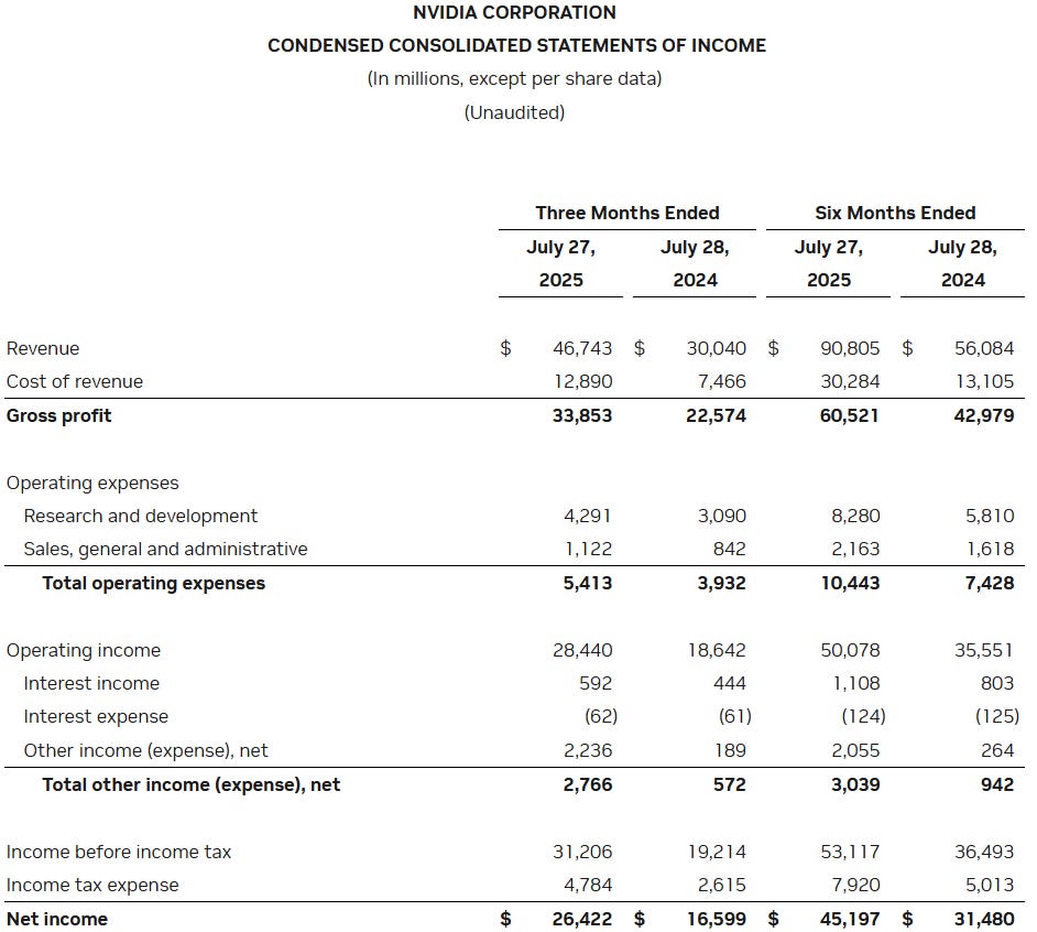 A 61.9% YoY growth for the semester, with 66.6% gross margins, a logical growth of R&D spending for a “small” dollar amount compared to Nvidia’s revenues, 49.8% of net margin and therefore a massive cash generation.
