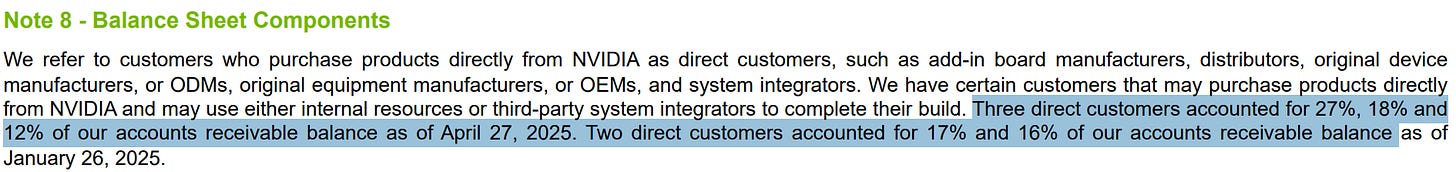 Second, many on social medias highlighted that 57% of Nvidia’s revenues came from three clients, and saw this as a risk - which is half true.