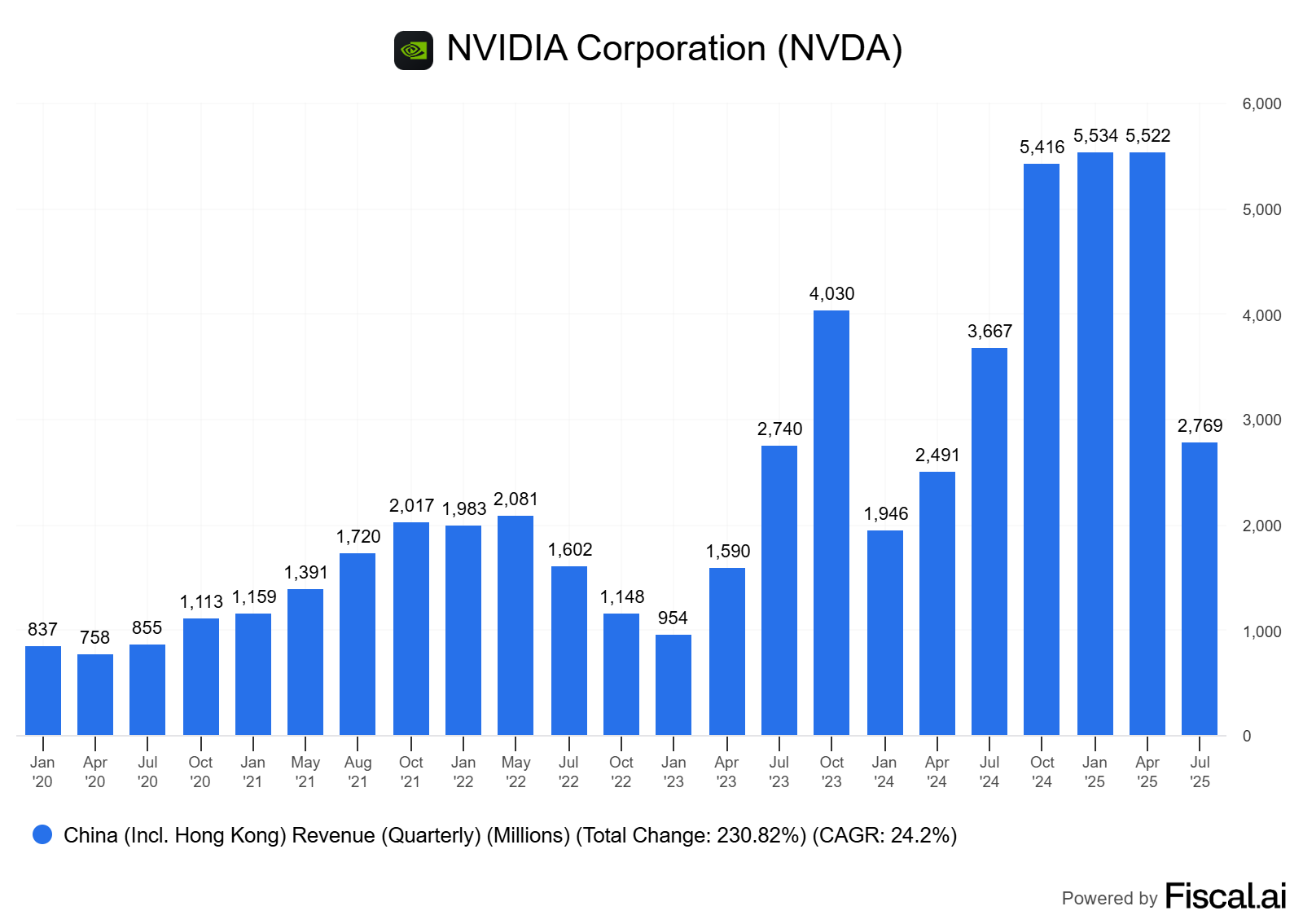 The first and only reason for a “slower” quarter comes from geopolitics as Nvidia did not sell any H20 for the entire quarter - compared to half of the last quarter with a normal business in the region.