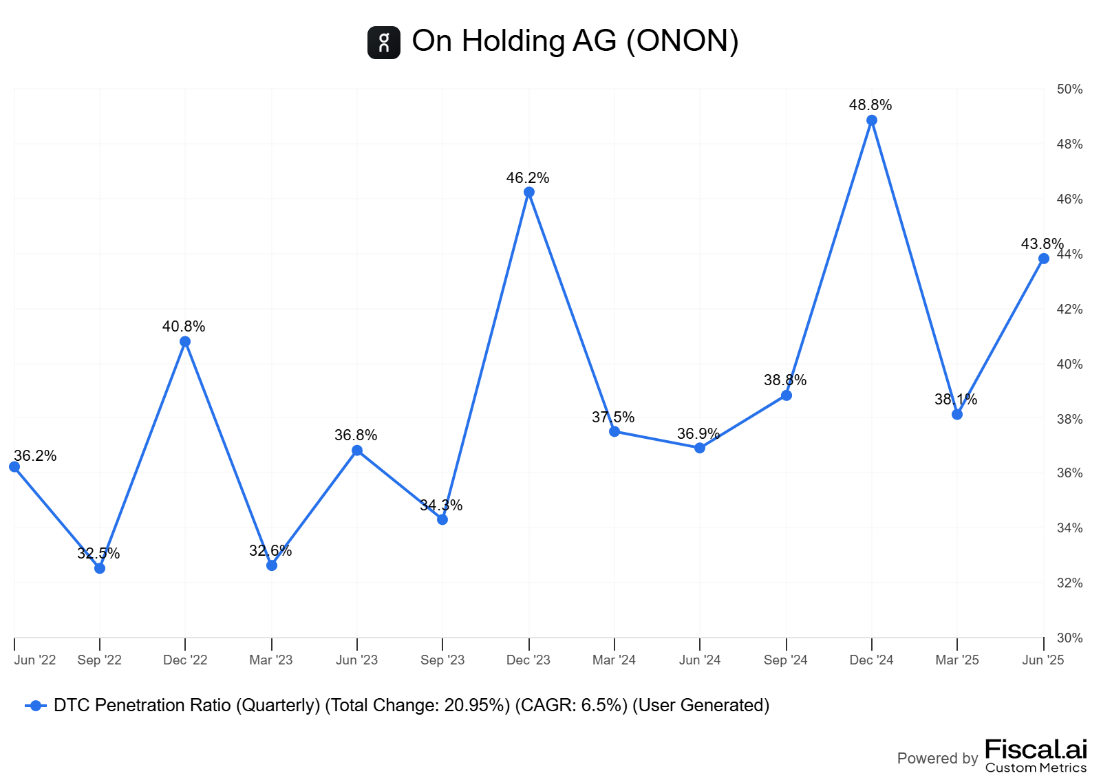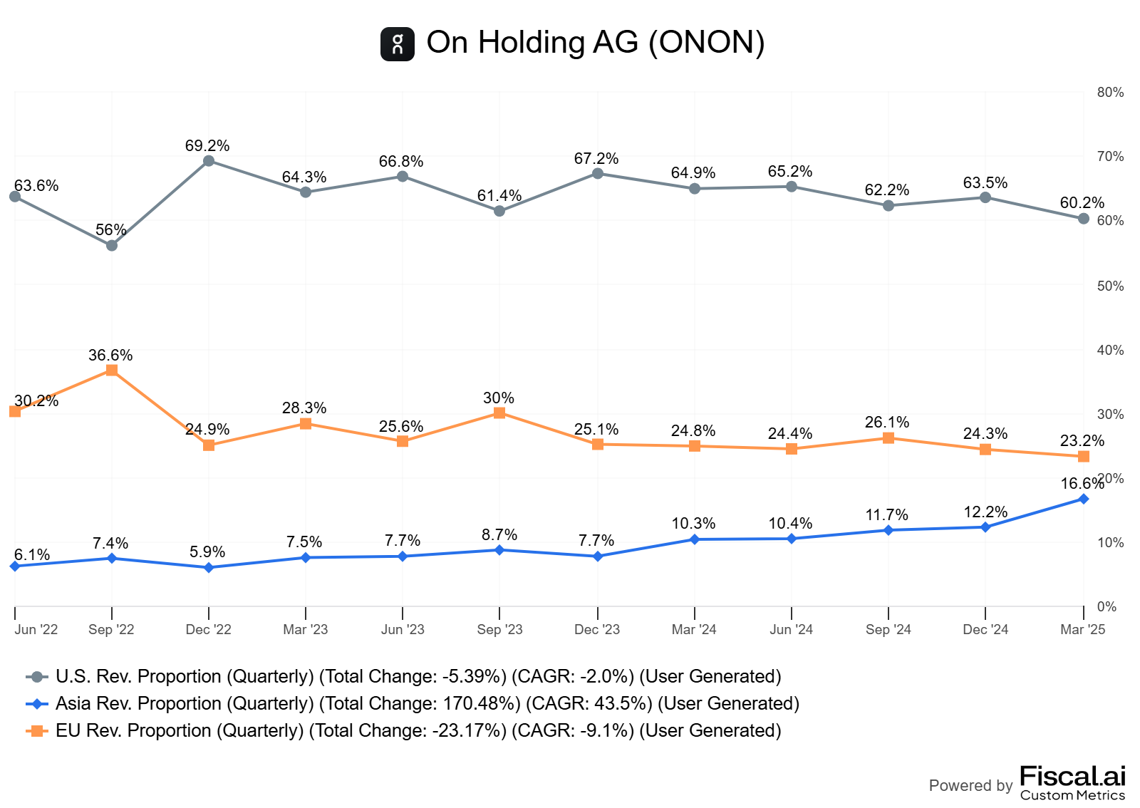 The U.S. remains the largest market with a good margin, but as On continues to focus on its growing geographies - Asia, the region will reduce its dominance while Europe is already outpaced - and I assumed it would take less than a year for this to happen early 2025.