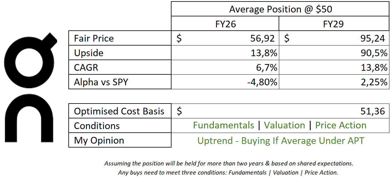 I will not change my valuation model despite its conservative growth as we need to include the risk of a lower volume due to pricing & tariffs, but under normal conditions, On would deserve a higher premium.