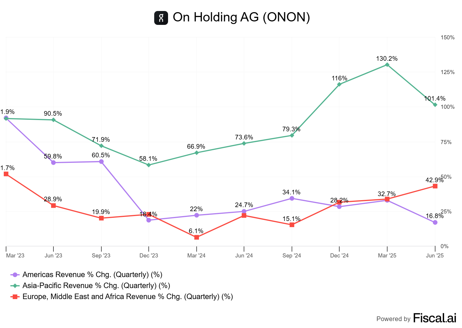For another great piece of news - and we will start on the less great right after, On is growing all around the world with acceleration of demand in Europe and, although this quarter was a bit slower but not impacting the global dynamic.