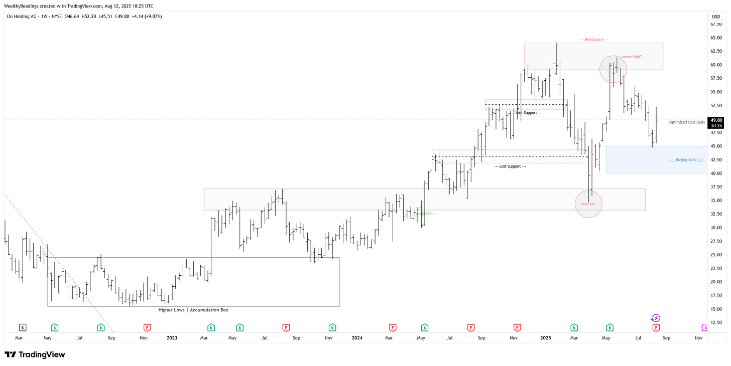 Price action continues to be bitchy because of the actual situation, and most apparel companies are getting butchered by the market, so On’s actual strength is pretty impressive.