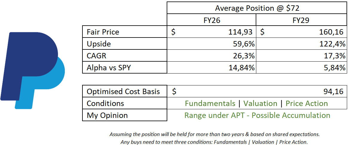 Again: conservative in terms of growth, which means in terms of multiples as well. If PayPal ends up ticking up growth in the next years, we can expect its fair price to rise as fair multiples will also rise.