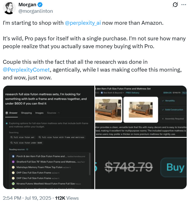 This is a big deal as e-commerce will be changed in the future, exactly like we stopped asking Google Search simple questions, we will not go towards specific e-coms anymore, we will ask LLMs to do the research for us.