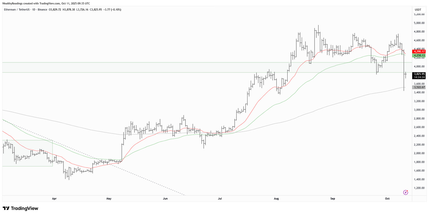 We had a massive liquidation event, and the order book is empty. Those who weren’t liquidated will get cocky and probably get liquidated as they play “the obvious trade.” As I’ve said often, wicks are always retested, and Ethereum’s wick sits at $3,441 or so. This is my next buying price, and I will remain positive for Q4 as long as we chop around this price.