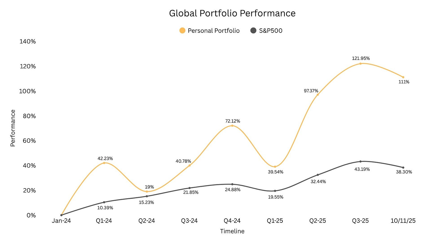 I’ll continue to accumulate Ethereum & BMNR on red days as I expect Q4 to be good for cryptos in general. I also started using leverage again on some altcoins although I don’t share those trades here, the bottom line is that I am confident enough to use leverage - reasonably and as long as the S&P is healthy.