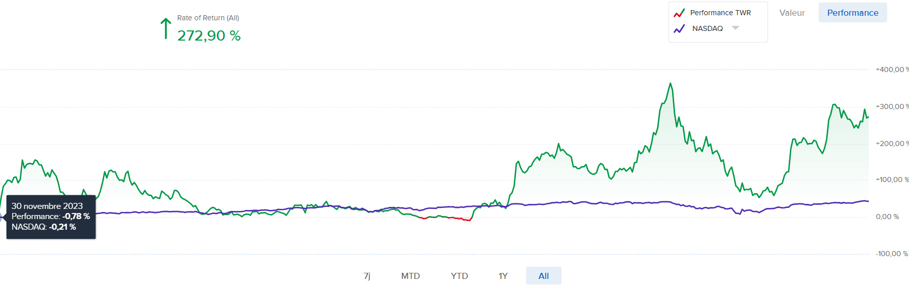 I added the portfolio’s performance since I opened the account, which I’ll share from now on as individual position returns do not reflect global performance due to position sizing.