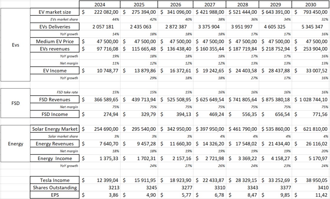 I think you understand that it will be very, very hard to corner Tesla into a single market. We can put them in the solar market at large, but that wouldn't include FSD nor Optimus. We can, of course, compare it with the EV market, and I will, but it still won't be enough as we'd forget about Optimus, FSD, and the entire solar branch... There's no way to value Tesla properly.