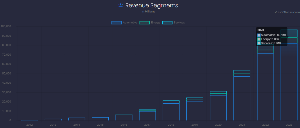 Energy. But Tesla has more up its sleeves, starting by its energy branch growing over 30% CAGR the last five years, above the industry average of roughly 15%, taking shares of the global market so we could expect this trend to continue.