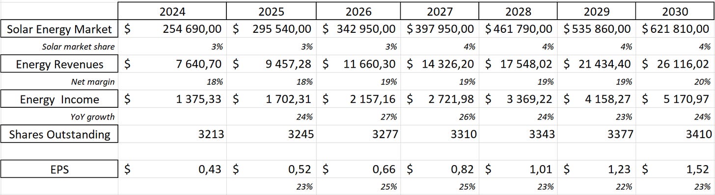 The EPS computation might look silly as those are two businesses inside the same company but I just wanted to add it for the visual and if you want comparisons, Enphase is trading at a PER around x60.