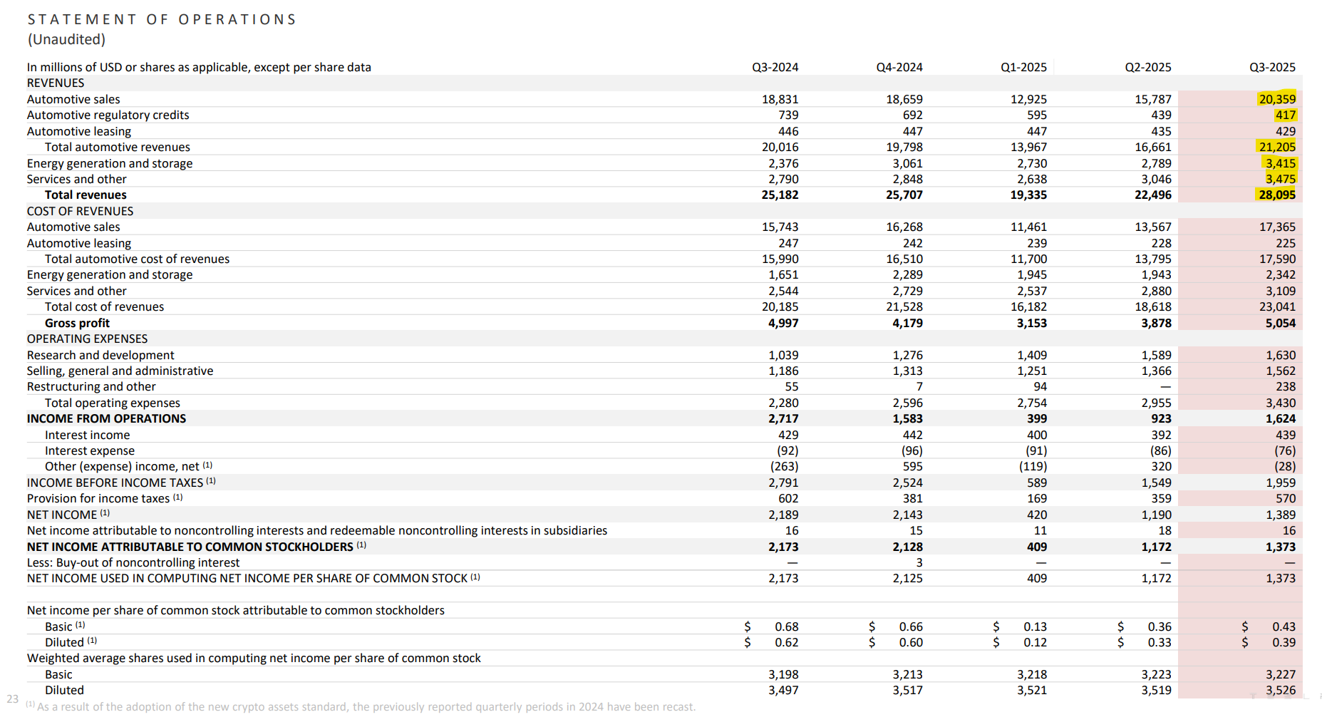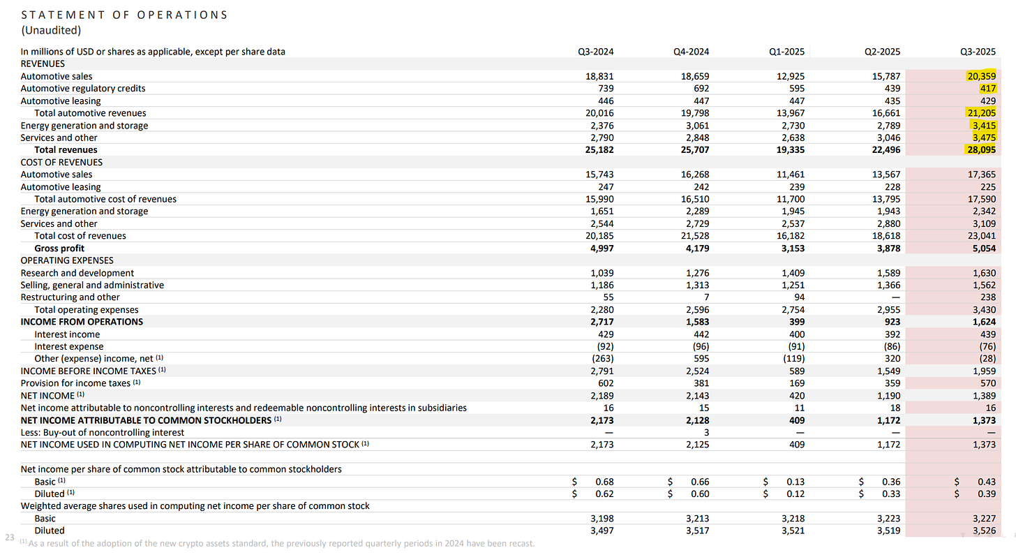 Tesla’s core business returned to growth. Bears will argue that demand was driven by the expiration of EV subsidies at the end of Q3. Bulls will argue the global rollout of the refreshed Model Y is the source of demand. Both points carry some truth.