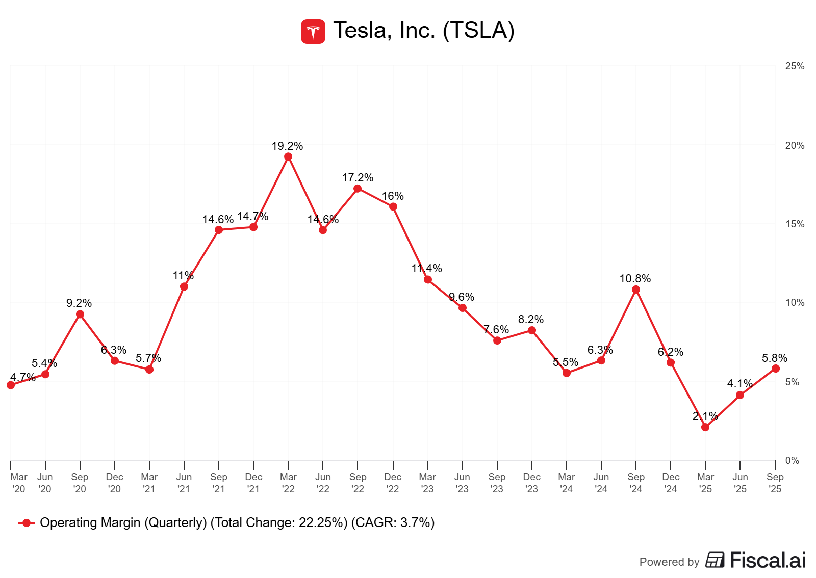 I focus on operating margins because Tesla’s net income includes unrealized P&L which is misleading. It means I ignore interest on cash but so be it.