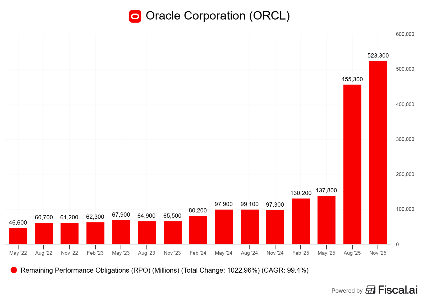 The first was minor: Oracle missed on analysts’ revenues, reporting $16.1B compared to $16.2B expected, a 0.62% miss. This wasn’t a big deal, but it didn’t help, as the conclusion was either that their compute pricing is low, or that they didn’t deliver what they were supposed to.