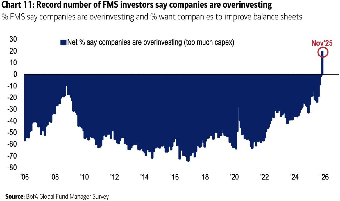 Today, for the first time since ever, the majority of analysts believe the spending is going too far, which explains the global pessimism.