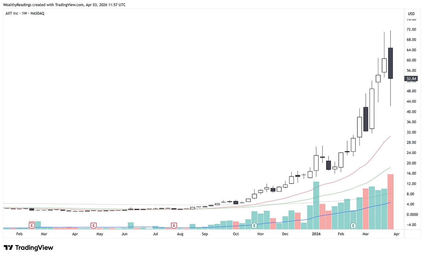 Without much surprise, it comes at a premium but this is where my speech about Nvidia and analysts’ expectation comes into play. The stock is up 2,222% since 2025 to a ~$3B market cap for ~$90M of revenues. It is extended, very much, but it has everything we are looking for: massive volume and rapid expansion on strong potential and fundamentals.